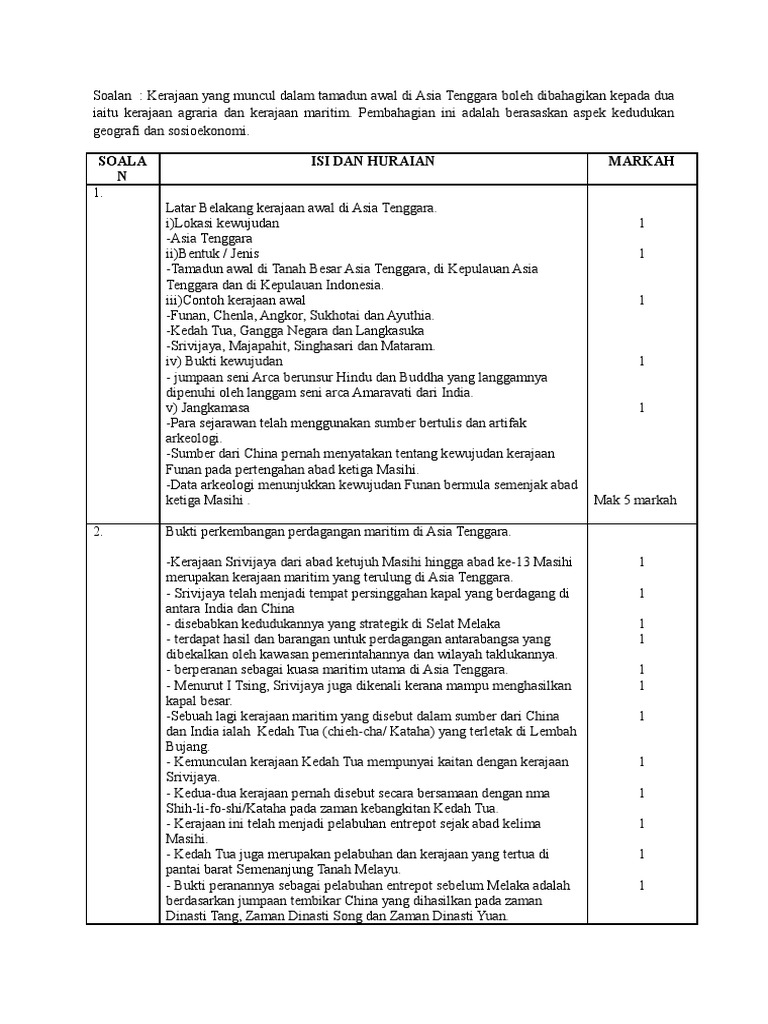 Skema Jawapan Tamadun Awal di Asia Tenggara Soalan Kertas 3 Tingkatan 4 Bab 3 Untuk calon diberikan pada hari peperiksaan Soalan. Pada saat yang sama abad ke-12 menyaksikan awal dari kemunduran Sriwijaya di dalam. Kedaulatan negara kita pula berpaksi pada kedaulatan Raja-raja Melayu.